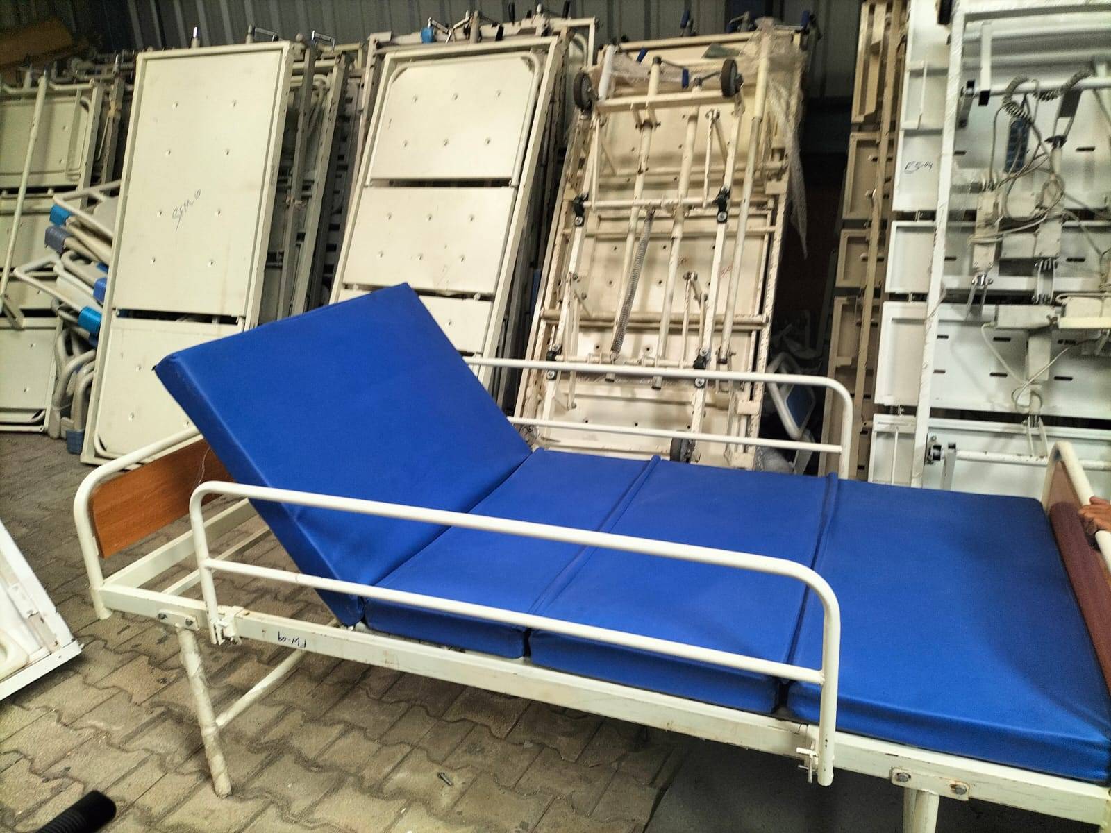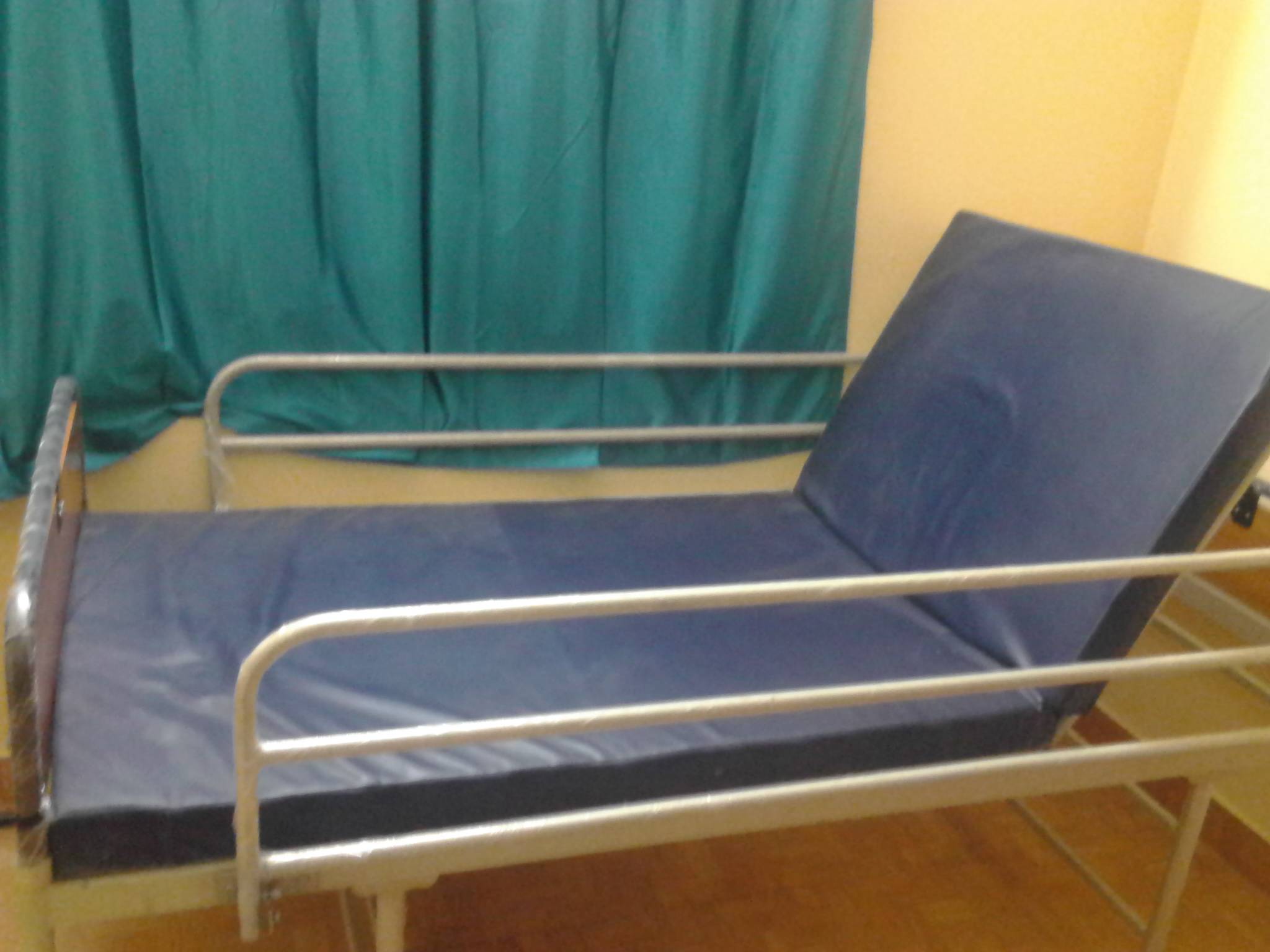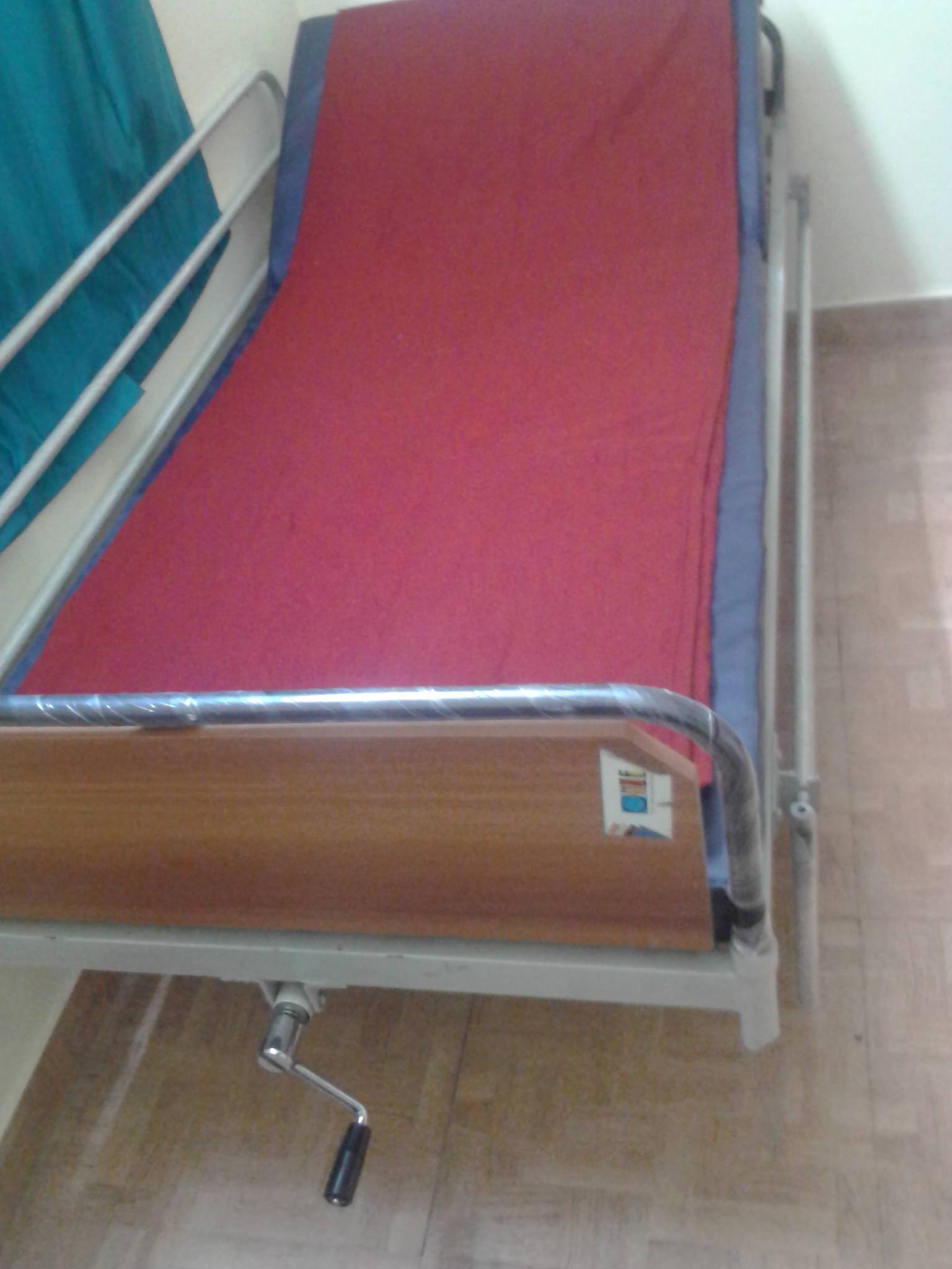 This cot features a head-raising mechanism with a combination of wood and metal frame, including head and leg bows, as well as reclining metal side rails. The frame and legs are constructed from 18-gauge mild steel and are powder-coated for durability. A one-year replacement guarantee is provided for the frame and legs upon purchase. The cot is available with a mattress, which includes a 2-inch coir layer and a 1-inch foam layer covered in rexine. Additionally, wheels can be added for an extra charge of 400 per month if required.